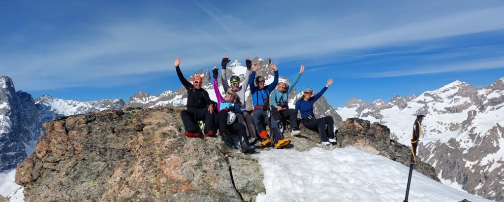 Mixant neige, glace et rocher nos sorties alpinisme s’effectuent dans les massifs des Ecrins, Vanoise ou Mont blanc.
