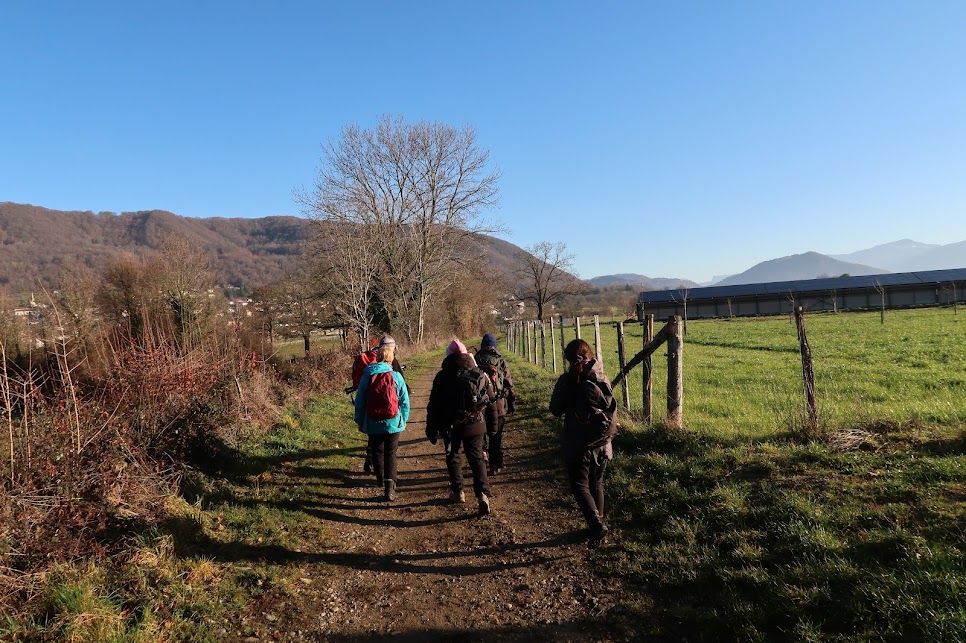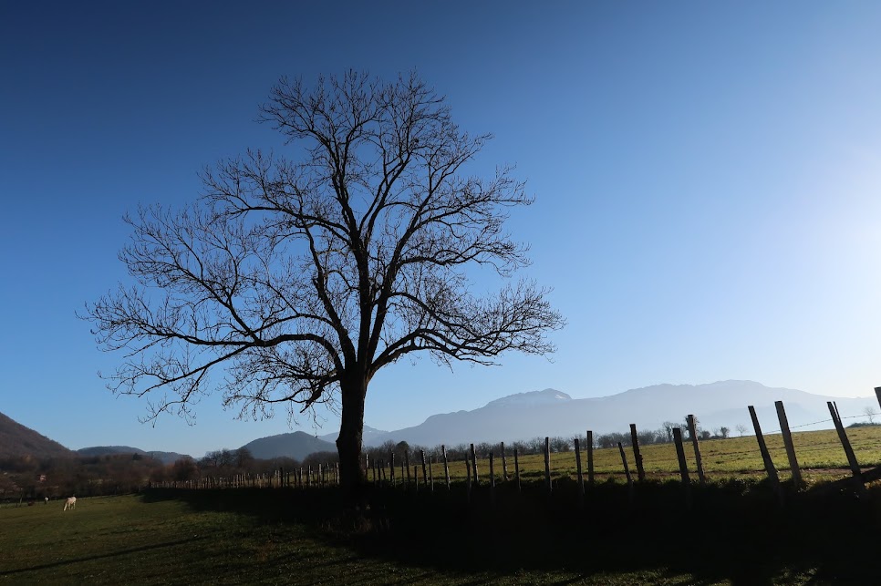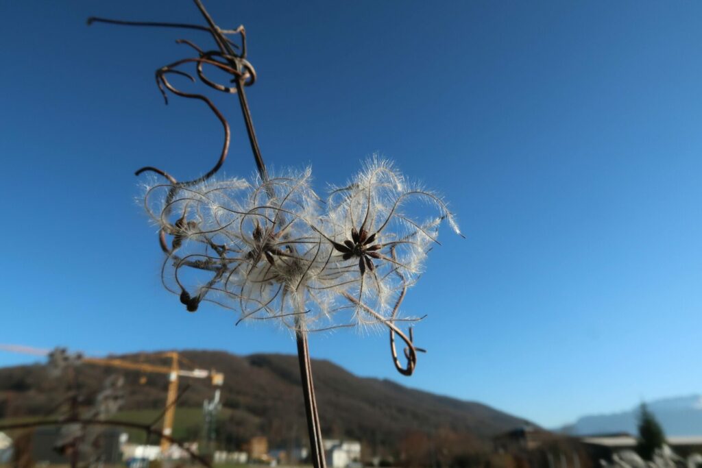 Samedi 12 décembre 2025. Une belle journée d’hiver s’annonce : un petit vent frais mais un beau ciel bleu. Quelle bonne idée a eu Elisabeth de nous proposer d’aller prendre l’air dans le pays voironnais. Avec en prime, l’objectif de revenir avec quelques végétaux pour décorer nos intérieurs pour cette fin d’année.