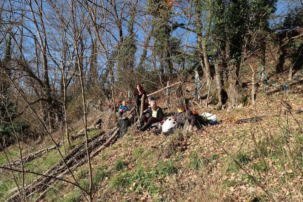 C’est l’heure du pique-nique, et ça tombe bien car après avoir traversé St Blaise du Buis, nous empruntons un joli sentier en direction du Grand Voye, et en contrebas nous trouvons un coin tapissé de feuilles sèches, au soleil, avec vue dégagée vers la Chartreuse, le Vercors et la cluse de Voreppe.