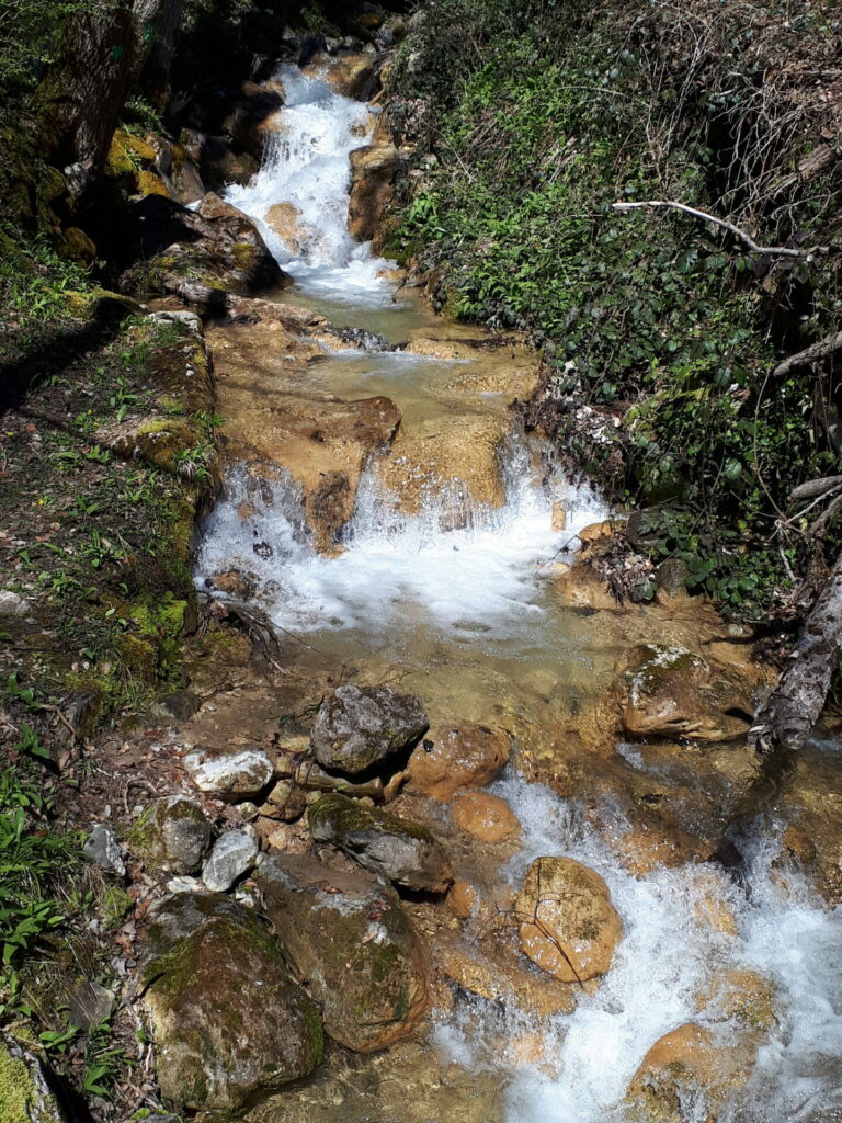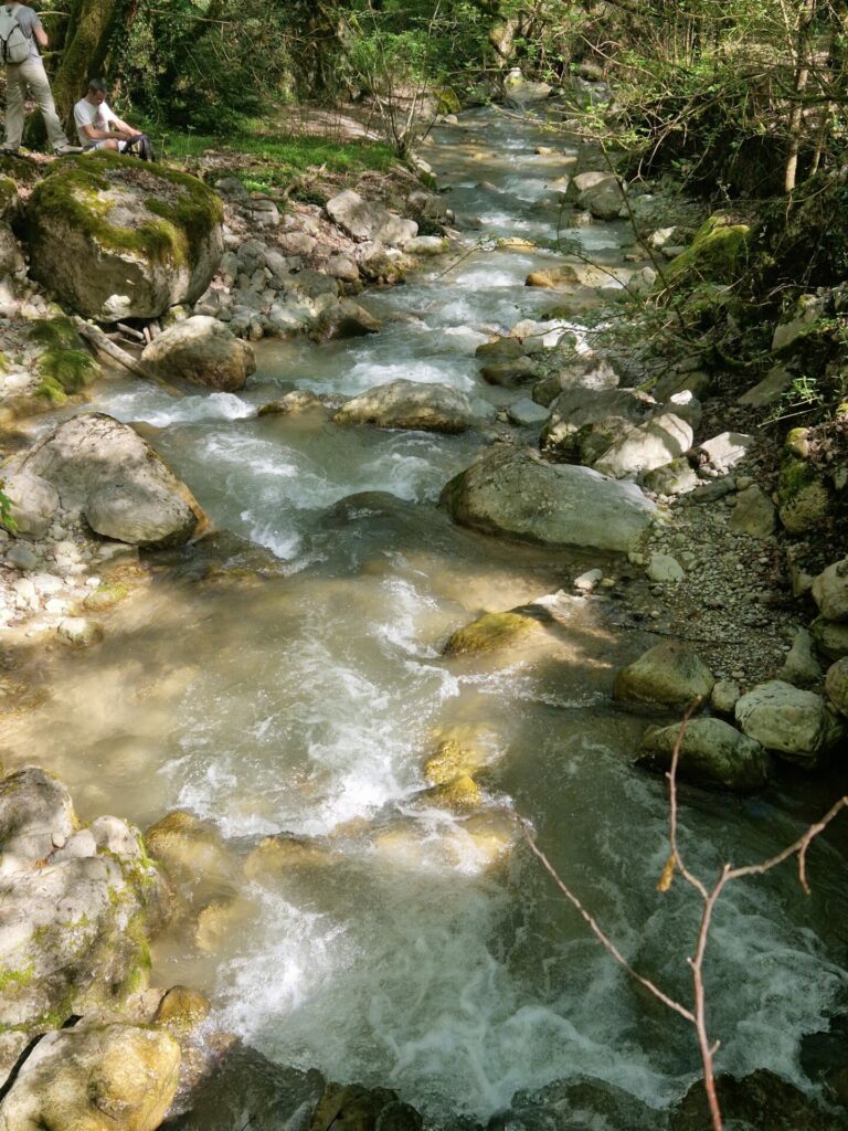 Le retour s’effectue versant le plateau des petites Roches en contrebas de Saint Pancrasse en passant les Hameaux de Baure et la Meunière sur le GR de pays, nous traversons le joli torrent de la Gorgette; petite halte rafraichissante, avec cueillette d’ail des Ours.