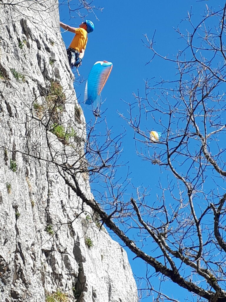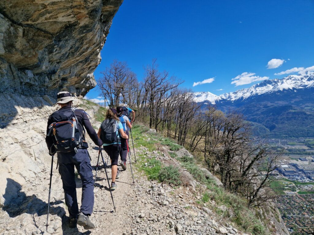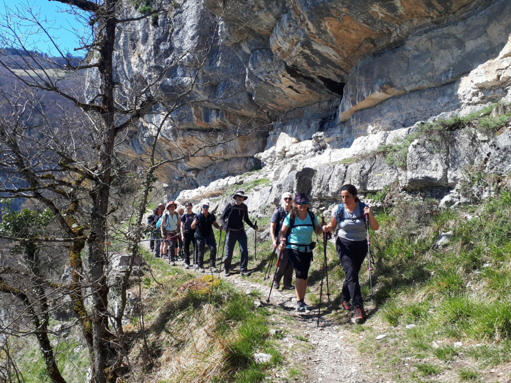 Poursuite par le sentier de découverte, par lequel nous rejoignons la belle et surprenante vire d’accès au site d’escalade des Rochers de Luisset, avec au moins 250 voies du 4a au 9a.