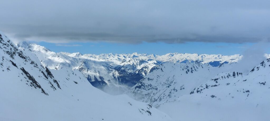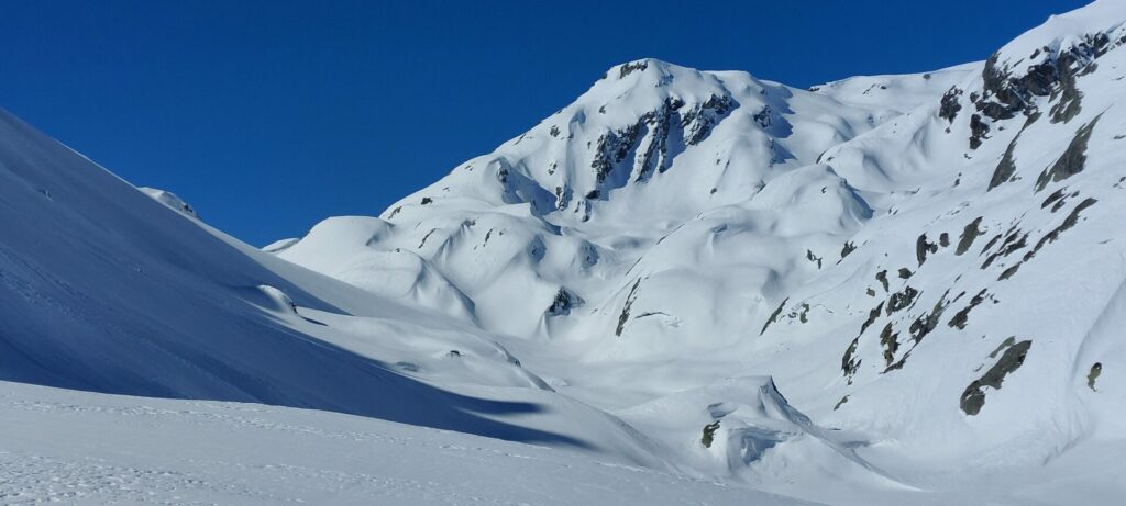 Le sommet du louprama (2585m) est un belvédère idéal pour contempler le mont Pourri et le dôme de la Sache. La descente se fait dans une poudreuse de cinéma jusqu’au refuge.