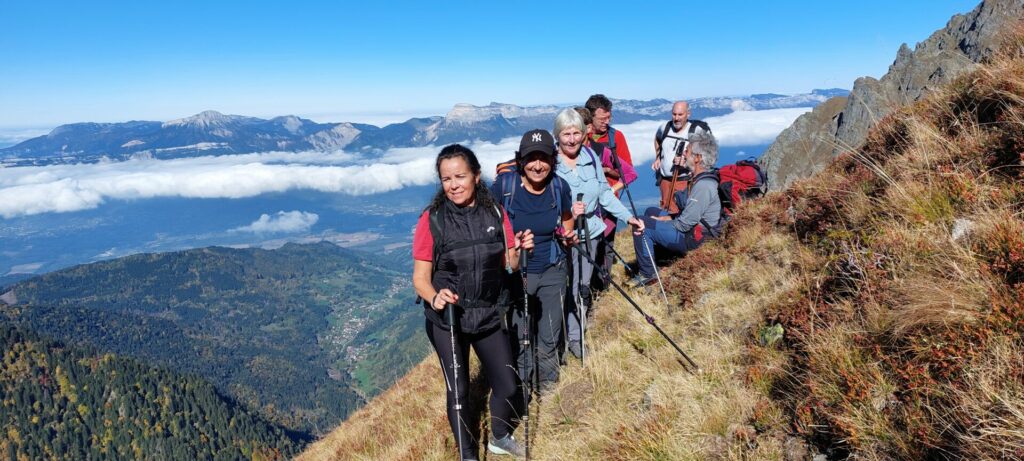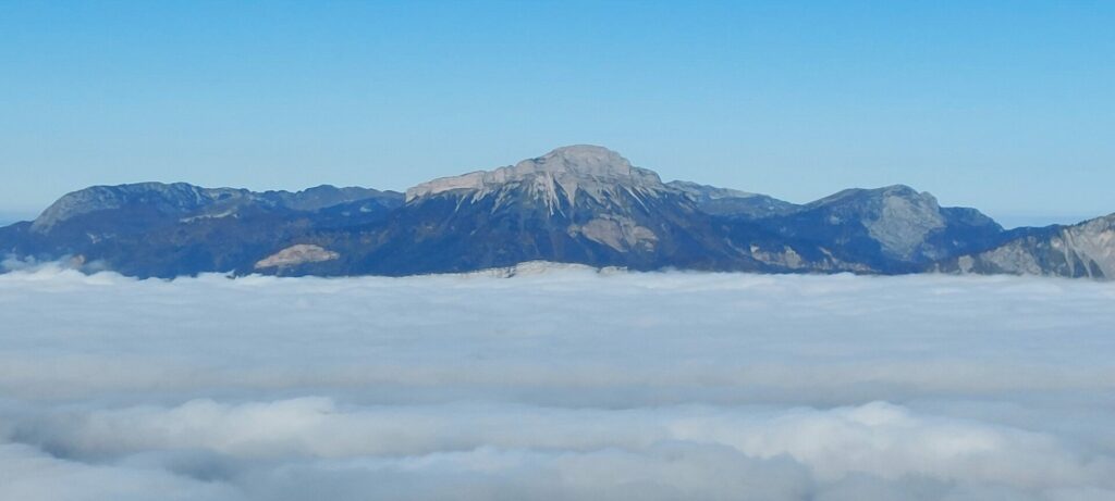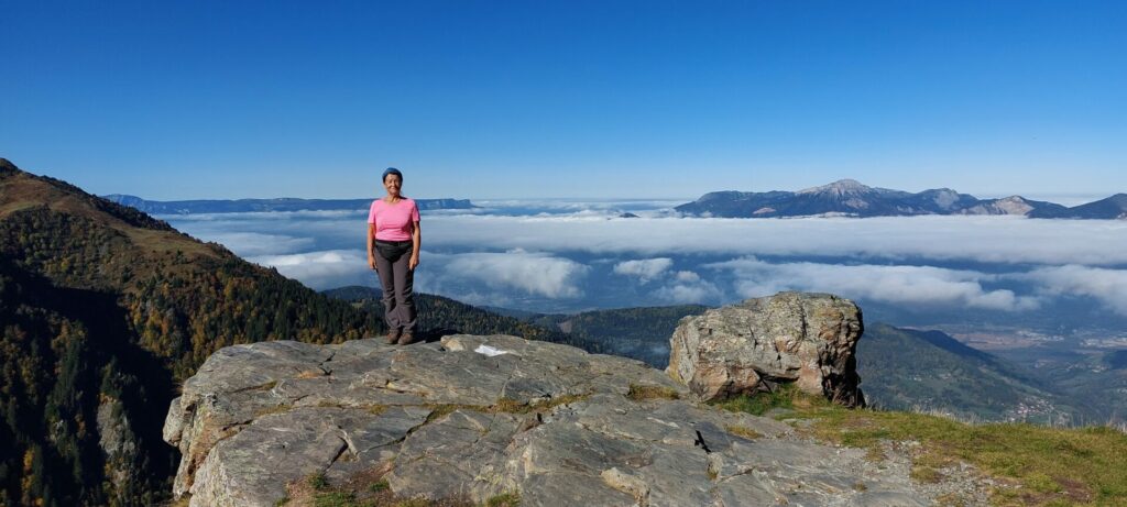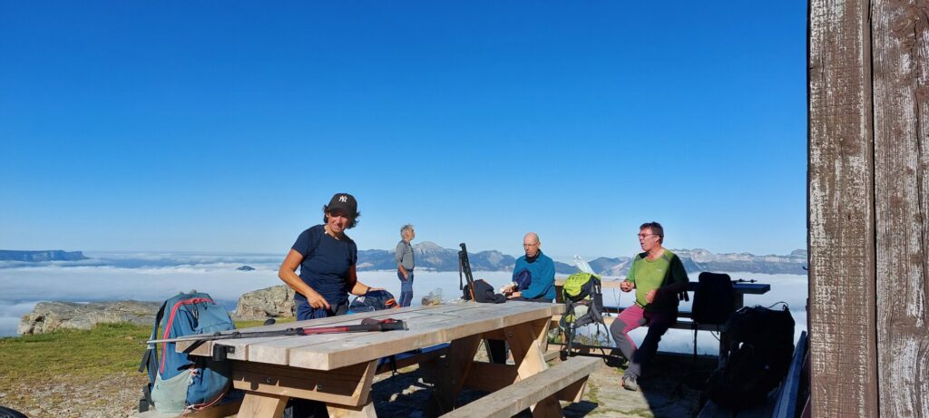 Du pont, une petite grimpette assez raide nous mène au Refuge Jean Collet à 1950m. Nous sommes au soleil, au dessus de la mer de nuages et Marc propose de passer le reste de la journée là, tellement on est bien.