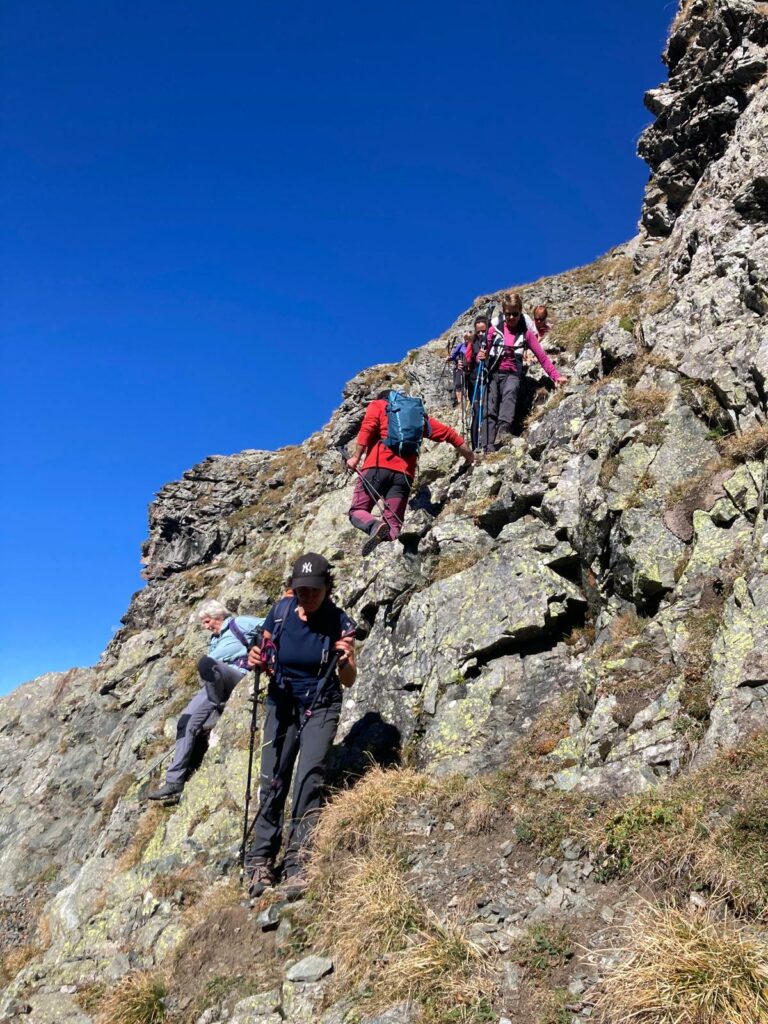 Après une descente délicate mais qui se passe bien pour tout le monde grâce aux deux serre-files Daniel et Marc, nous débouchons sur le plateau du lac blanc. C’est l’heure de la séance shooting. et du pique-nique.