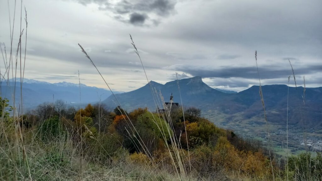 Nous jouissons d’un joli panorama à 360° sur le Bassin Chambérien,  le Granier, La chaîne de Belledonne, du Pic du Frêne au Grand Colon. et des  premiers sommets des Bauges( Roc de Tormery, Mongelas, Pointe de la Galoppaz.