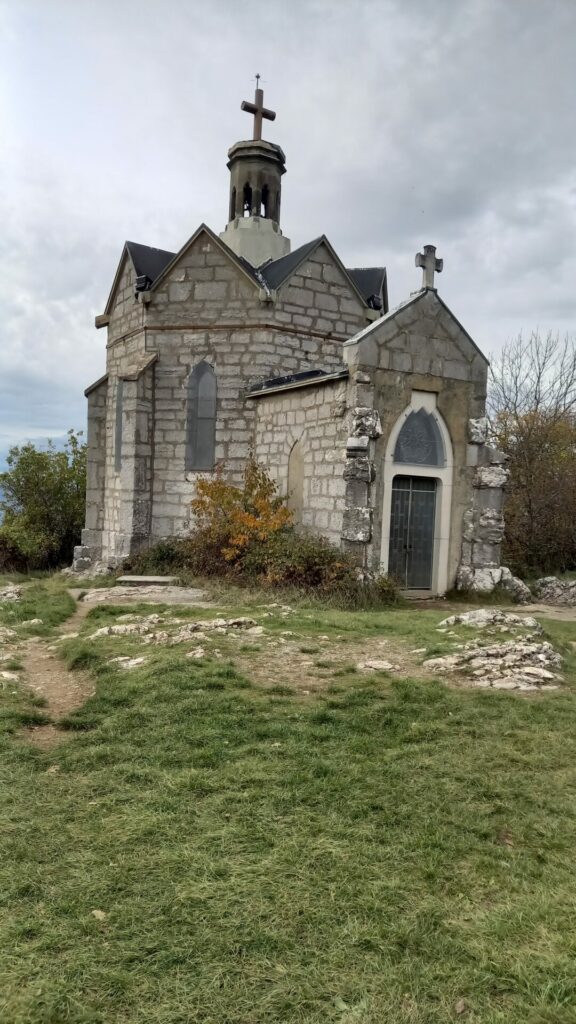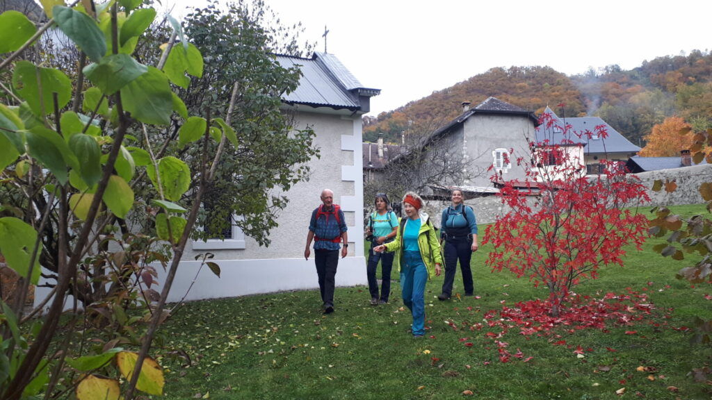 Vers 14h00 nous entamons la redescente passant par l’élégante chapelle  du Mont saint Michel bien visible de la vallée et mise en valeur par un éclairage nocturne.