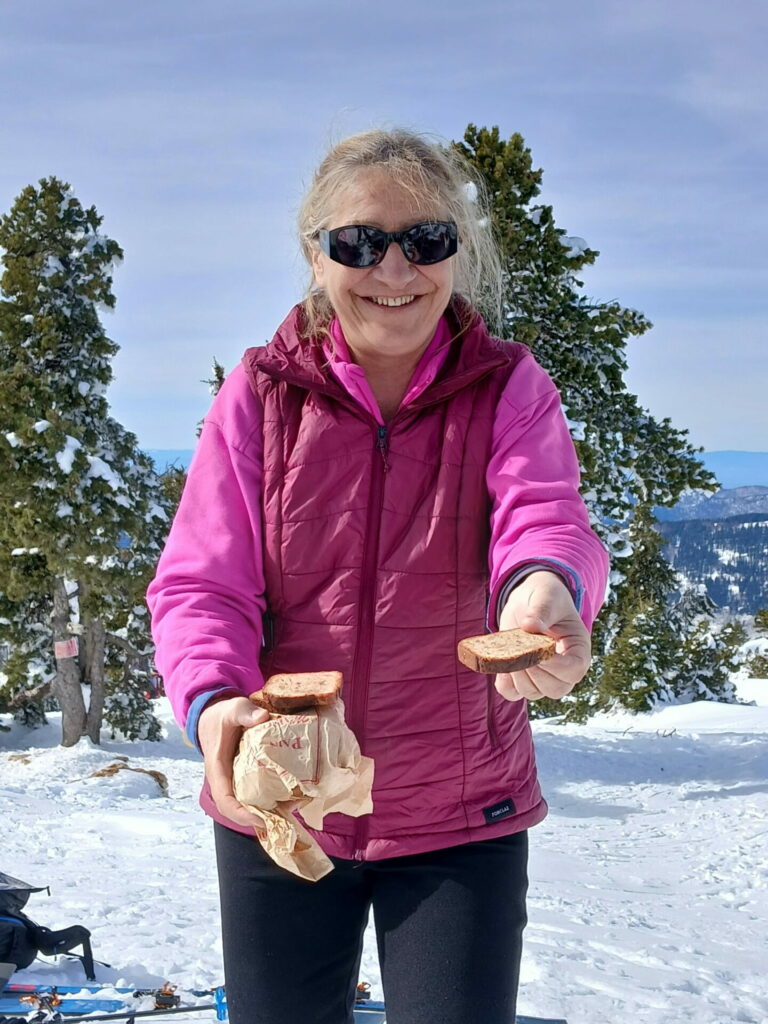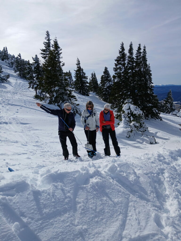 Nous descendons dans une neige trafollée . L’ambiance est à la rigolade .Mazarine , la benjamine du groupe nous baptisera de « séniors sportifs ».La journée se termine par un pot au bar / boulangerie de saint Nizier .