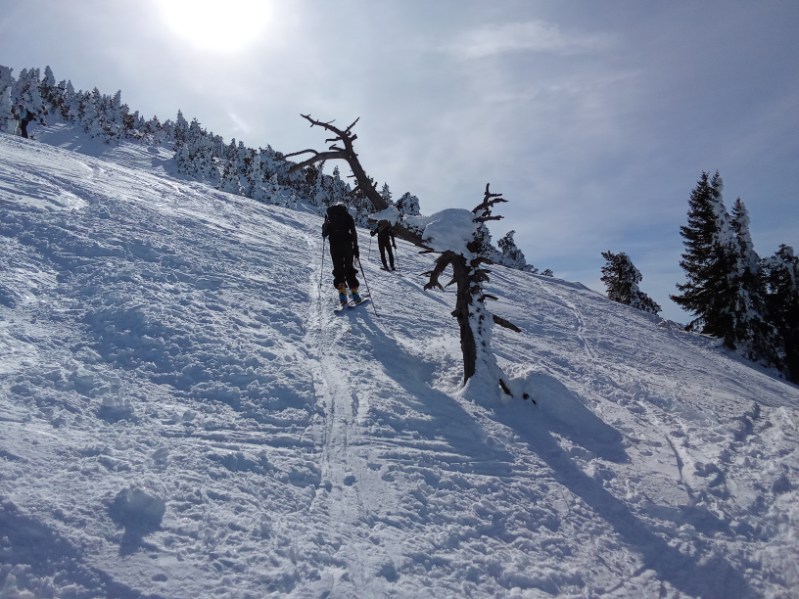Nous sommes finalement 8 au départ sous la prairie après Saint Nizier (1161m).Il fait beau. la neige est encore bien dure mais la montée ne nécessite pas l’utilisation des couteaux .