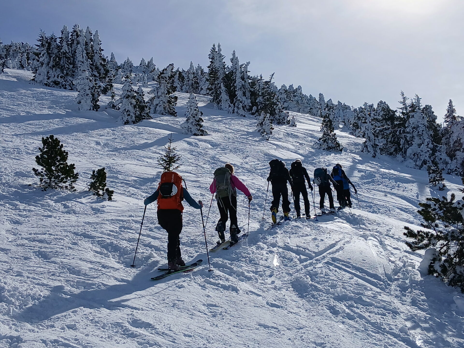 Nous descendons dans une neige trafollée . L’ambiance est à la rigolade .Mazarine , la benjamine du groupe nous baptisera de « séniors sportifs ».La journée se termine par un pot au bar / boulangerie de saint Nizier .