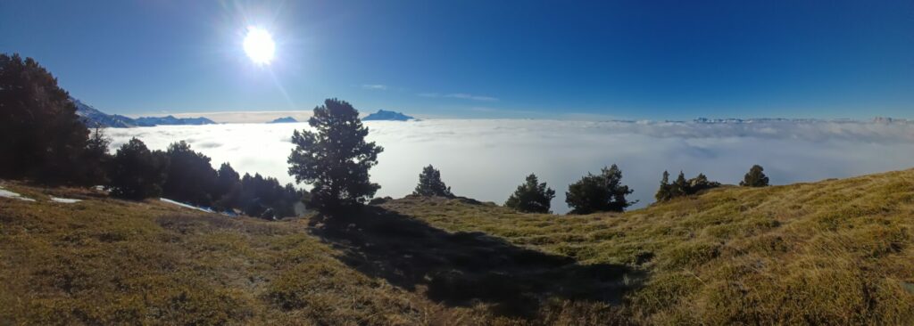 Il faut attendre 1700m, après une montée rude et directe, pour sortir véritablement au-dessus des nuages…