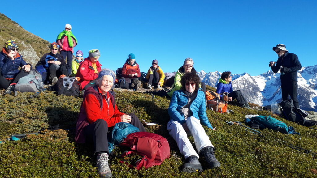 La petite bise du sommet est bien prégnante: environ -5°, et nous incite à redescendre au petit Col et replat des Grangettes pour profiter de notre pique nique.