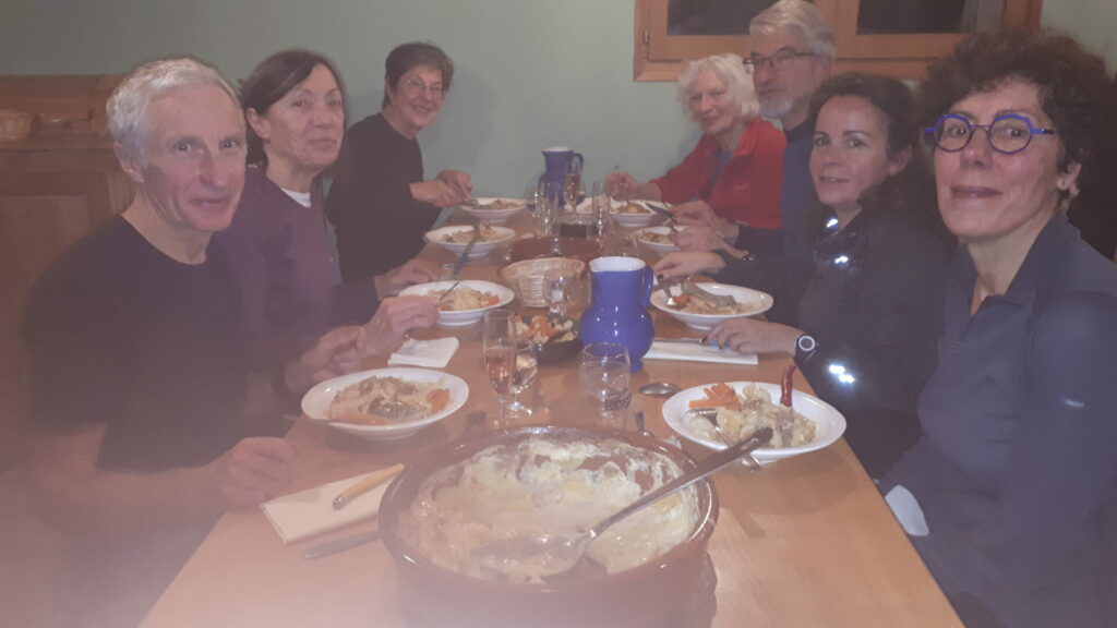 Installation au dortoir puis  dîner très copieux et festif  avec des produits frais et issus du plateau du Vercors.