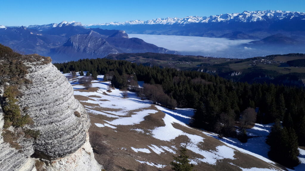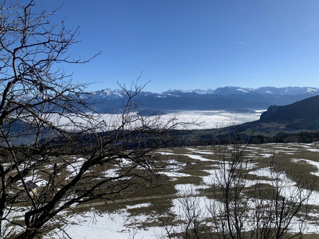 Après une halte au Col de la Molière nous poursuivons au nord jusqu’à la bosse de Plénouze(1648m) pour découvrir un paysage très ouvert à l’Est sur la chaîne de Belledonne et la Meige,  et la plaine d’Autrans jusqu’au bec de L’Orient à l’ouest