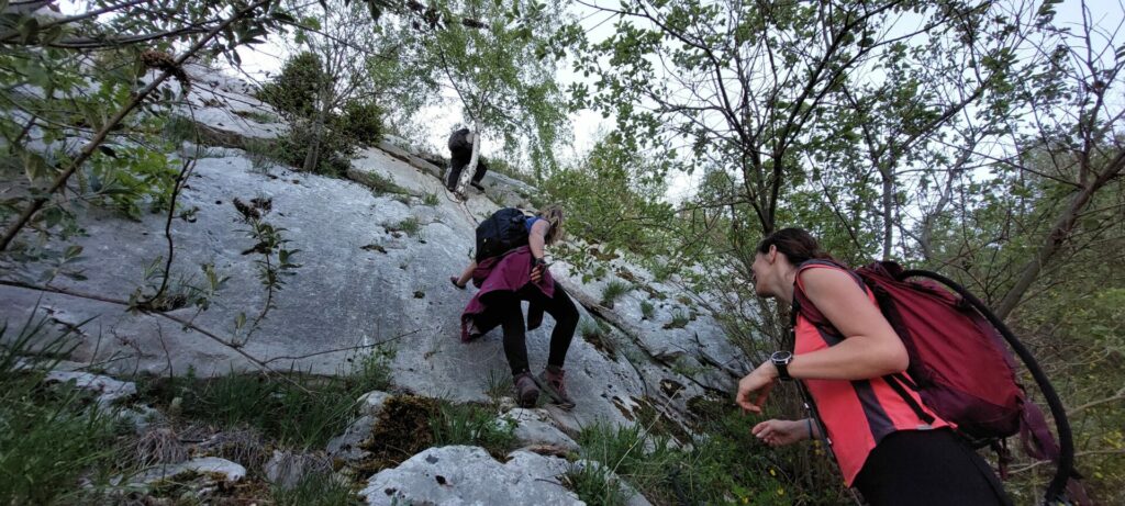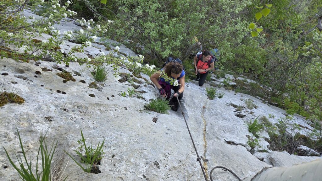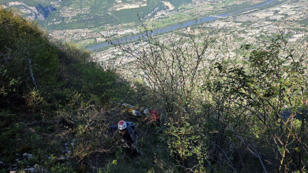 Il est possible de revenir par l’itinéraire de montée, les câbles des Charbonniers, car plus facile et moins engagé. Nous avons apporté un sécateur qui a un peu servi, à la montée comme à la descente. Il semble que les sentes de cet itinéraire aient été améliorées et re-balisées.
