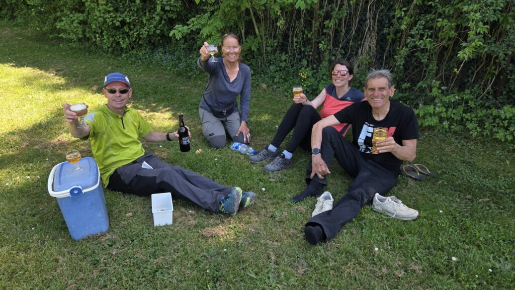 La carte OSM indique, de façon correcte, les sentiers de la face Ouest, seule la fin de la descente ne correspond plus à la réalité. Dernière bonne surprise, Yves a apporté une glacière contenant bières et limonade, pour un pot convivial dans l’herbe.