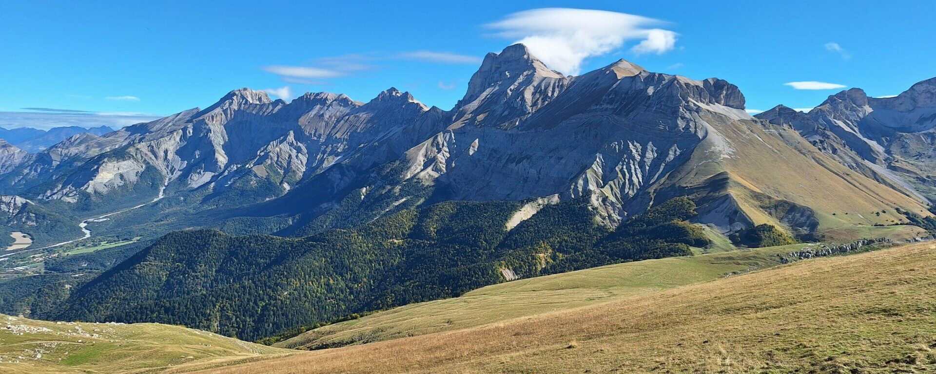 Nous jouissons ici d’un panorama exceptionnel sur toute la chaîne Ouest du Dévoluy.