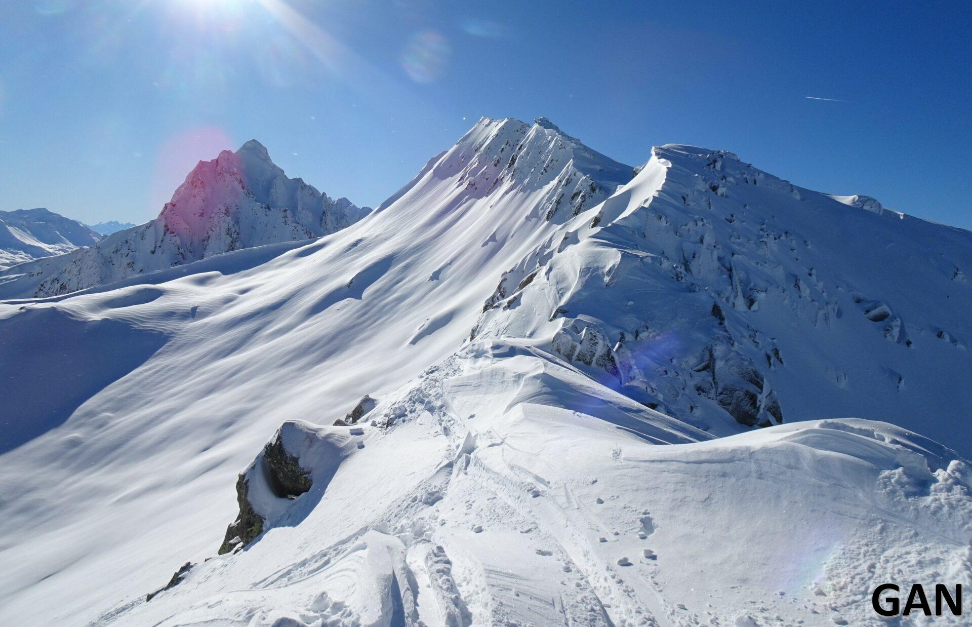 On avait convoqué le ciel bleu : il est là. On avait convoqué la poudre : elle est bien là (environ 30 cm à 2000m). On voulait la rando pour nous tout seuls : on a croisé en tout 4 personnes sur cet itinéraire pourtant bien fréquenté.