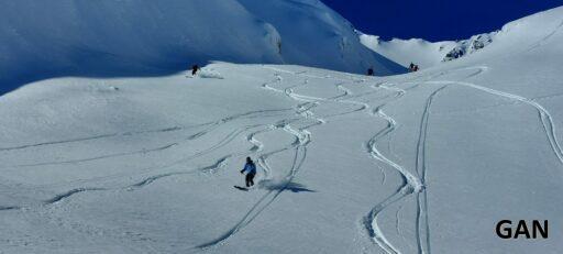 Nous choisissons de descendre sans tarder pour profiter de la neige encore froide.