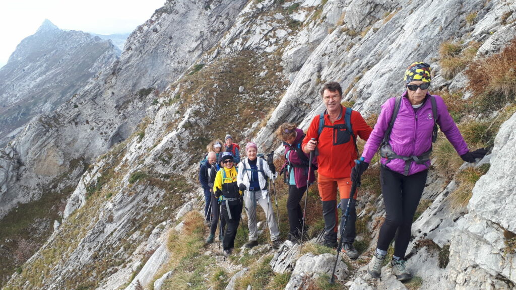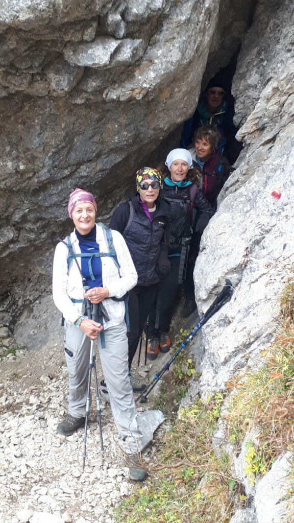Ouf nous voilà tous sur le sentier , bâtons récupérés à la recherche d’une petite combe abritée du vent pour déguster notre pique nique et partager nos friandises habituelles.