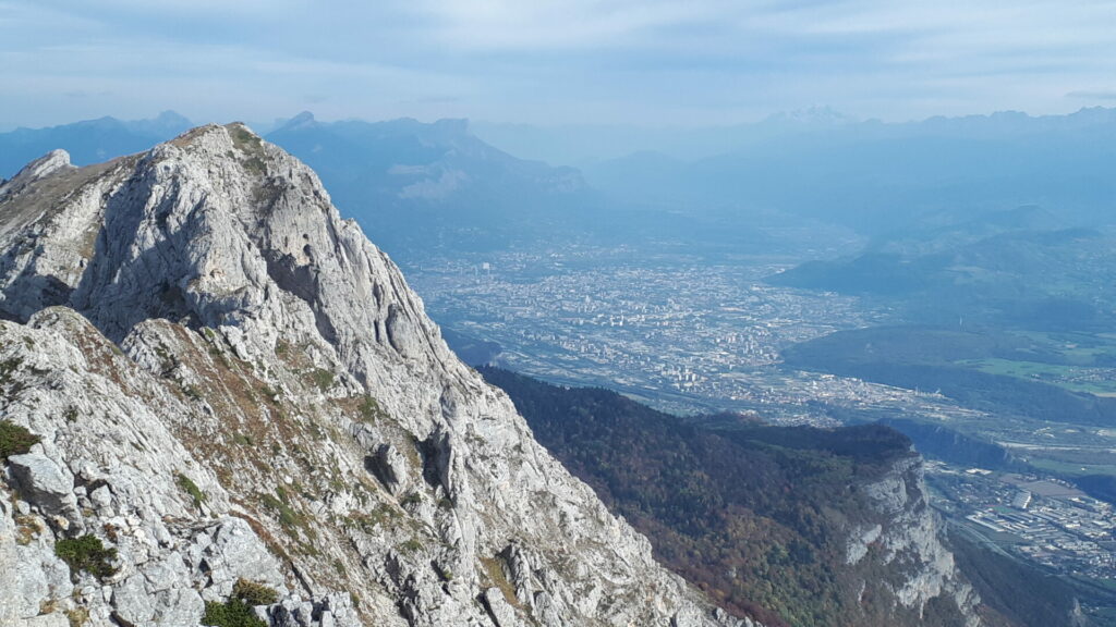 D’ici, la vue est splendide sur l’arête effilée du Ranc des Agnelons et les Arêtes du Gerbier., le plateau du Vercors, et de Belledonne au Mont blanc .