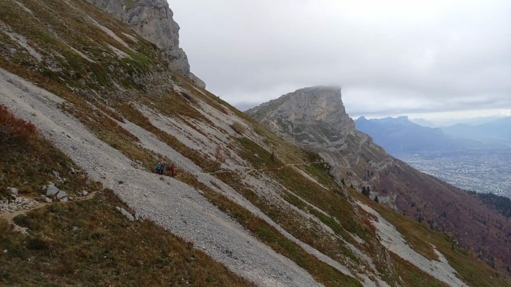 Nous basculons sur le versant Est, de la barrière rocheuse du Vercors, avec ses immenses falaises et son improbable sentier du périmètre qui parcourt le balcon Est, de Saint Nizier au pied du Grand Veymont sur environ 50 kms.