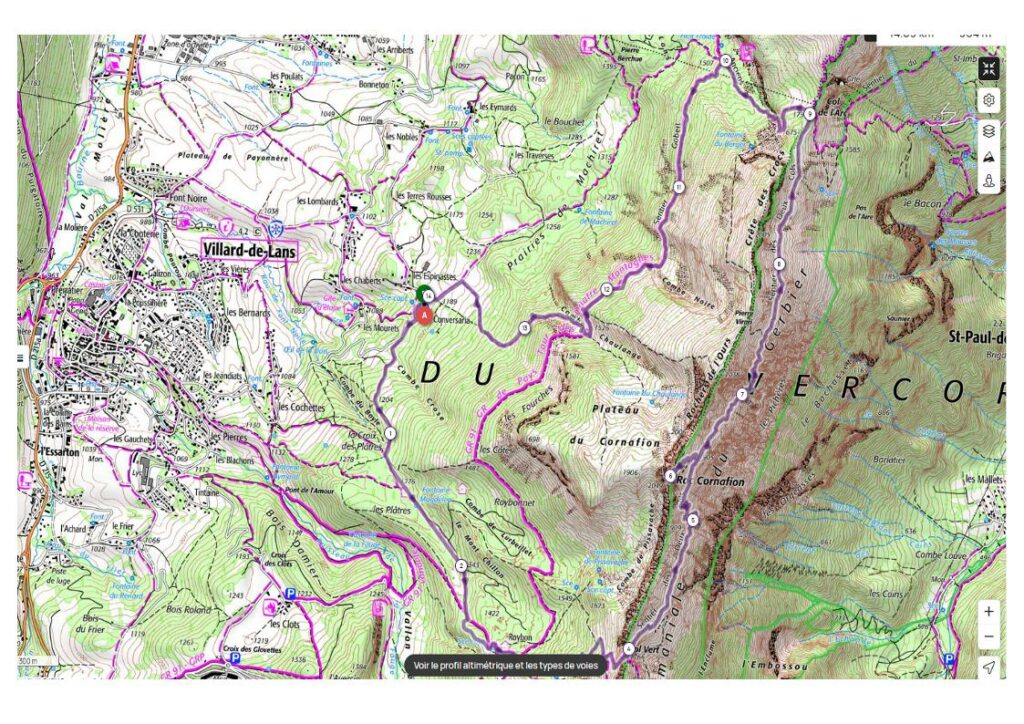 Il constitue la portion la plus élevée du sentier du périmètre entre 1700m et 1900m entièrement dégagé au-dessus de la forêt et dominant des grandes pentes herbeuses, ou des éboulis ou de barres rocheuses.