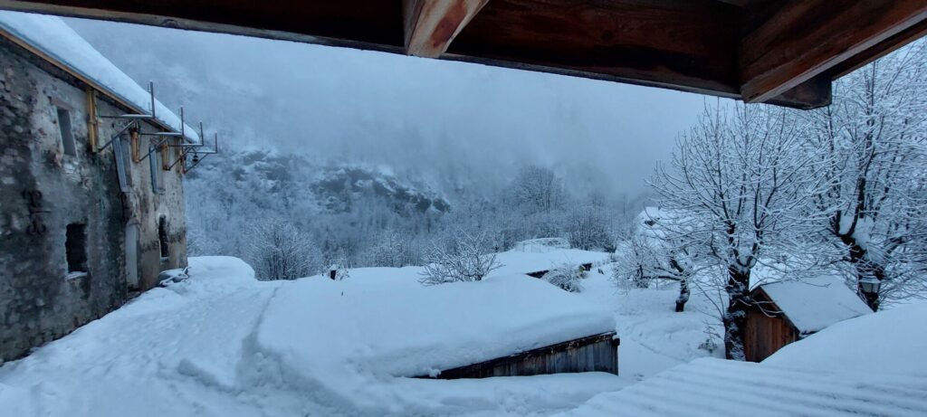 Hervé VdA a organisé de longue date un séjour de ski à Prapic dans le Champsaur. Nous sommes 6 inscrits à ce séjour, avec de beaux rêves mais les prévisions météo et nivologiques sont inquiétantes. Prapic (1557m) est un village au bout du monde, dans une vallée raide et encaissée à 5km d’Orcières, accessible par une route enneigée et verglacée.