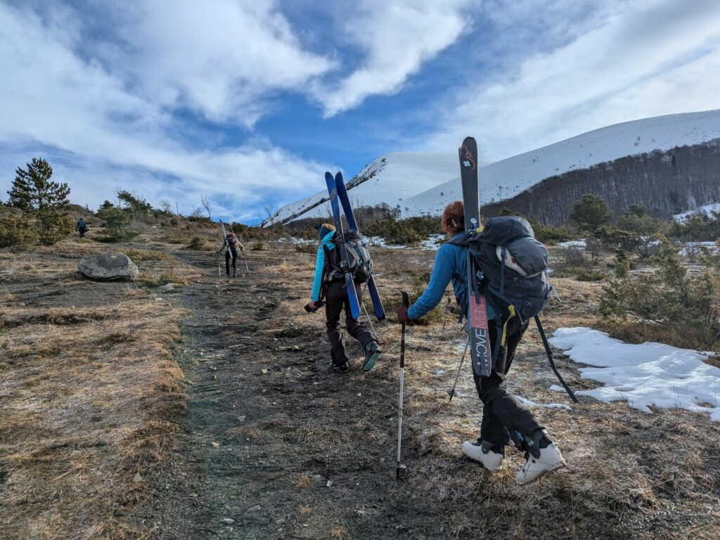 Départ de Villelonge à 1280m pour Côte belle (2027m) . Mais où est passée la neige ?