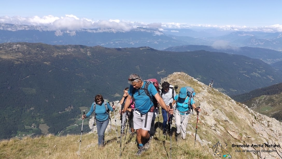 Ce dimanche 6 septembre nous étions dix ganistes au départ du Curtillard (1000 m) pour effectuer une traversée méconnue entre le vallon de l’Arpette et le vallon de la Grande Valloire. La température matinale très fraîche nous incite à démarrer à un bon rythme pour effectuer l’ascension raide d’une belle forêt de laquelle nous sortons vers 1550 m après 1h10 de marche.